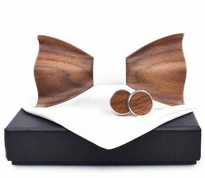 Ez az elegáns szett kézzel készített fa csokornyakkendőt tartalmaz, mely sima felületű, így kifinomult stílust kölcsönöz viselőjének. Tartozik hozzá még egy pár mandzsettagomb is, melynek belsejében lévő fa díszítés illik a csokornyakkendőhöz. Kellemes kiegészítő hozzájuk a díszzsebkendő, mely a finom textúrájával szépen hangsúlyozza az elegáns öltözéket. A szett egy fekete színű díszdobozban küldhjük, amelynek köszönhetően nem csak praktikusan tárolható, hanem ideális ajándékcsomagolás is. Ez a szett leginkább olyan uraknak való, akik nagyra értékelik a hagyományokat, de emellett nem félnek felfrissíteni azt valamilyen modern részlettel.